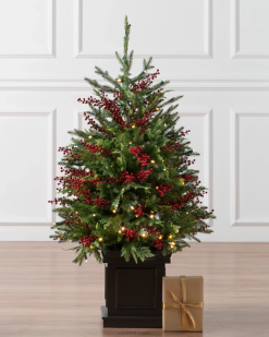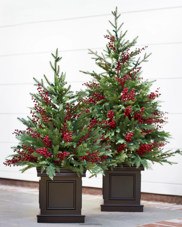 Haga que su exterior luzca tan alegre como su interior. aporta un toque festivo de color a vestíbulos, porches y caminos con frutos rojos brillantes y luces LED festivas.