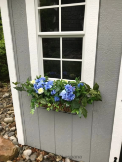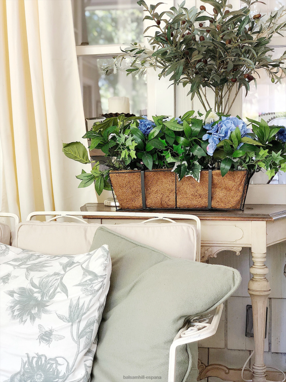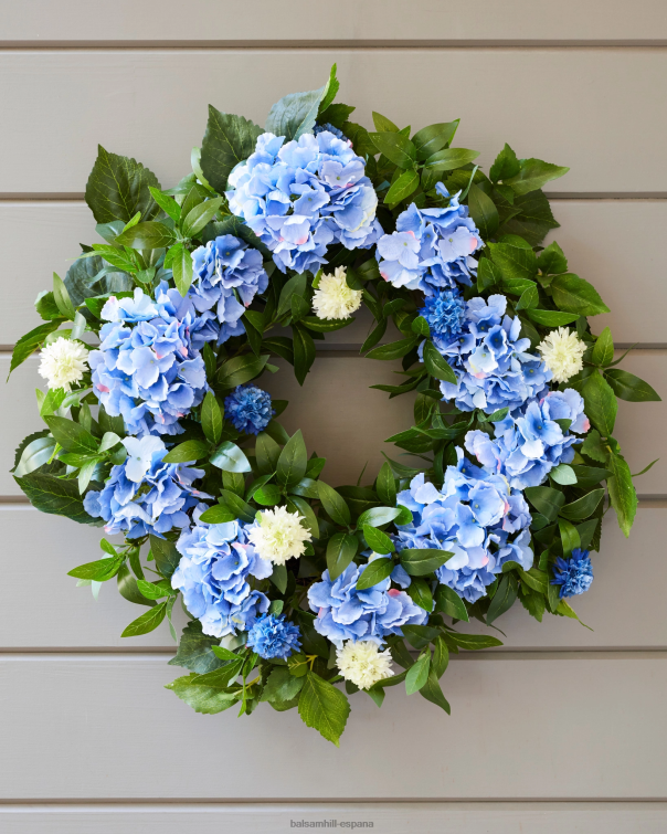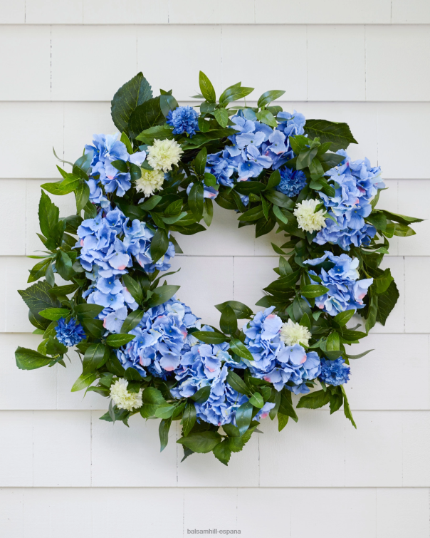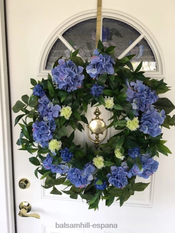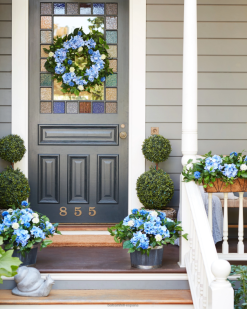 Ilumina tu decoración con tonos azules y vegetación verde. hermosas hortensias y crisantemos agregan color y encanto instantáneos a sus puertas, porches y ventanas.