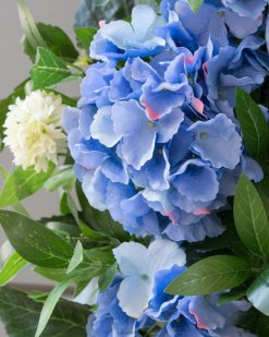 - presenta hortensias y crisantemos